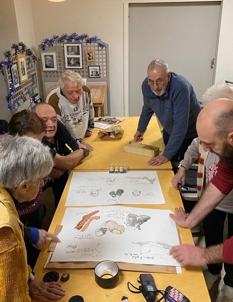 J'en profite forcément pour rendre hommage aux personnes qui m'ont fait confiance quand je leur ai dit : « je n'ai aucune idée de ce qui va en ressortir » et qui ont répondu : « OK ». Le jeu de la participation à été joué. Ainsi je n'avais aucune idée de ce que donnerait ma collaboration avec les habitants du territoire de la Noix de Grenoble quand la fondation des Petits Frères des Pauvres a financé le projet, et quand le musée du Grand Séchoir a proposé d'accueillir le résultat de ces travaux. Plus récemment, c'est EPISOL qui m'a fait confiance pour travailler avec un groupe de personnes adhérentes à l'épicerie solidaire.